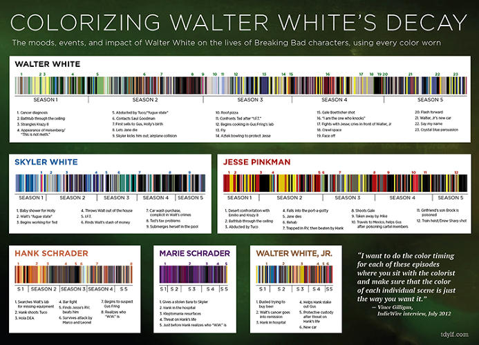 This is a series of timelines depicting every outfit worn by the leading characters of Breaking Bad.